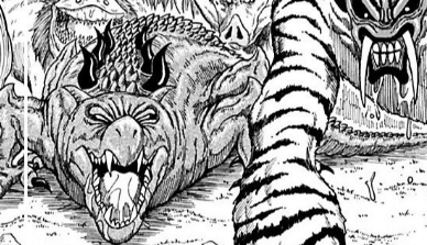 シマウマの模様をしたゴリラ。哺乳獣類。捕獲レベルは9。生息地はリーガル島(白い森林)など。体高6.2m、体重3.5t。 手足は木の上での生活に適応したカメレオンのような作りとなっている。桁外れの握力とパワーを持ち、その握力で枝を掴み、木々を縦横無...