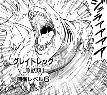 脚が生えた陸上での行動も可能なサメ。魚獣類。捕獲レベルは6。生息地はアイスヘル付近の海洋。体長8m、体重1t。 陸上でも素早く動くことができるが、陸での行動時間は約1時間程度。 身は脂のりが良く、刺し身にして食べると絶品で極寒の世界での貴重な栄... -