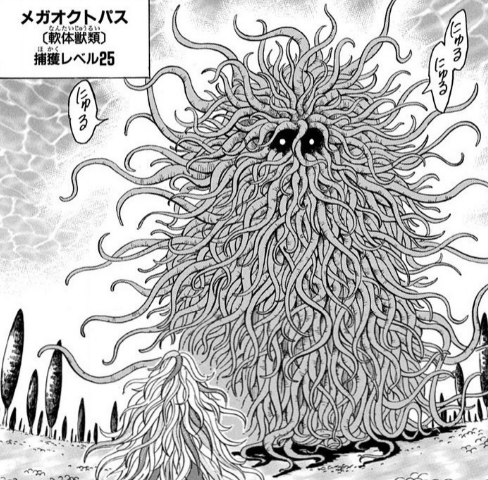 数万本もの足を伸縮自在に操る軟体獣類。捕獲レベルは25。生息地は陸上でも海でも生息可能で、リーガルマンモスの体内に生息していた。体高18m、体重12t。 好戦的な性格ではなく、普段は海中の岩場の陰などに身を隠し、その無数の足で獲物を不意打ち的に捕... -