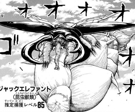 クワガタと象が混合した昆虫獣類。捕獲レベルは85。体長35m、体重18t。 高層ビルをも一撃で切断できる強力なハサミを持ち、BBコーンをも両断した。象の皮膚とクワガタの甲殻を合わせた屈強な背中に生える羽で、その体格からは想像できないほどのスピード(... -