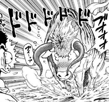 バッカス島に生息する「酔いどれ暴れ牛」という異名を持つ巨大な牛。哺乳獣類。捕獲レベルは30。酒乱島にも生息している。体長9m、体高3.5m、体重8t。 バッカス島のアルコールを含んだ湖の水を飲料水としているので、常に酔っ払ってフラフラしているが、酔... -