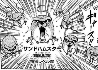 獰猛なハムスター。哺乳獣類。捕獲レベルは22。生息地はクッキングアイランド。体長2m、体重150kg。 クッキングフェスのトライアスロンクッキングの自転車ステージのお邪魔猛獣に使用されていた。鋭い牙と獲物の骨まで食い尽くすほど貪欲な食欲の持ち主で... -