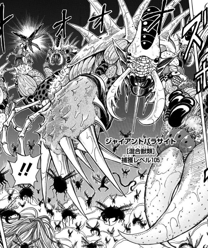 ハサミの切れ味のみに特化したグルメ界の混合昆虫。混合獣類。捕獲レベルは105。生息地はトミーロッドの体内。体長19m、体重7t。 直感や食義をマスターしたサニーをもってしても魔王の髪を使用せざるを得なかったほどの戦闘能力を誇る。サニーの髪を切れる... -