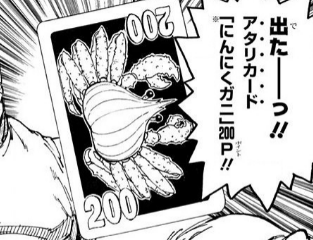 頭胸部がにんにくの形状をしたカニ。甲殻獣類。捕獲レベルは2。広い海域に生息している。体長60cm、体重8kg。 カニ味噌ににんにくの風味があり美味で、出汁を取るとにんにくガニの風味がよく出るためスープにも用いられる。味わいも申し分なく、食材として... -