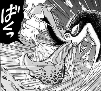 山をひと飲みする巨大なくちばしを有する超巨大ペリカン。超巨大鳥獣類。捕獲レベルは770。生息地はグルメ界の陸海の丘。体長1500m、体重9500t。 グルメ界でごく稀に山が降るような天候の時に一気に山を食い溜めする。グルメ界に広範囲に生息している。 卵... -