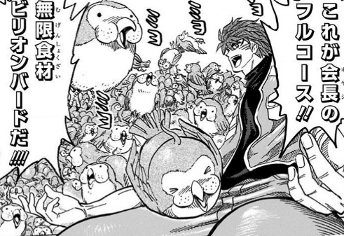 【概要】 太古よりグルメ界に生息した別名「億年食える鳥」とも呼ばれる幻の鳥。無限鳥類。捕獲レベルは1以下。体長45cm、体重8kg。 寿命は数千年とも数億年とも言われ、別名「億年食える鳥」として大昔は「家畜の王様」と称賛された。特筆すべきは繁殖力... -