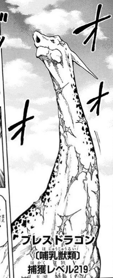 鼻から強力な空気砲を放つ哺乳獣類。捕獲レベルは219。生息地はグルメ界のザーベル島。体長300m、体高260m、体重12万t。 トリコが初めてグルメ界に挑戦した際は、トリコの攻撃が届かない数十km先からブレスの弾丸をお見舞いしたが、成長して再度グルメ界に... -